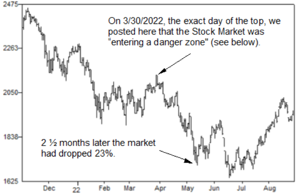 Update of Forecast RUT Top- On 3/30/2022 (See Below) we forecast that the Stock Market was “Approaching a High Risk Zone”. This post was the exact top of the market with strong upward momentum.