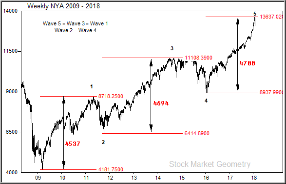 Shortly after the November, 2016 bottom we posted that a major bull advance was under way. Six months later the market has rocketed higher than anyone expected (except Stock Market Geometry).